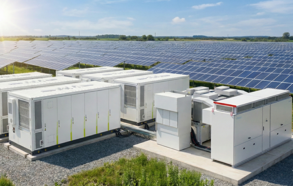 Wir integrieren Großspeicher direkt an Ihrem bestehenden oder geplanten Netzverknüpfungspunkt (AC- oder DC-Kopplung) und öffnen Ihnen hochprofitable Erlösquellen. – Utility-Scale Speicherlösungen